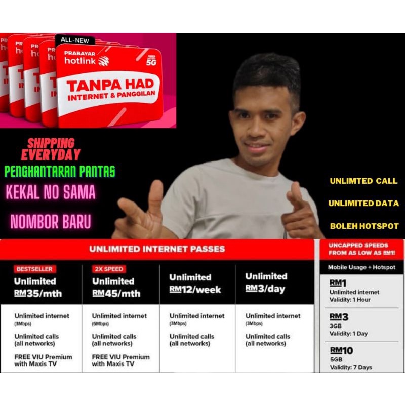 Maxis Hotlink Prepaid Unlimited Call Data Free Rm5 Kredit Kekal Nombor Sama Beli Nombor Baru Vip Nombor Shopee Malaysia